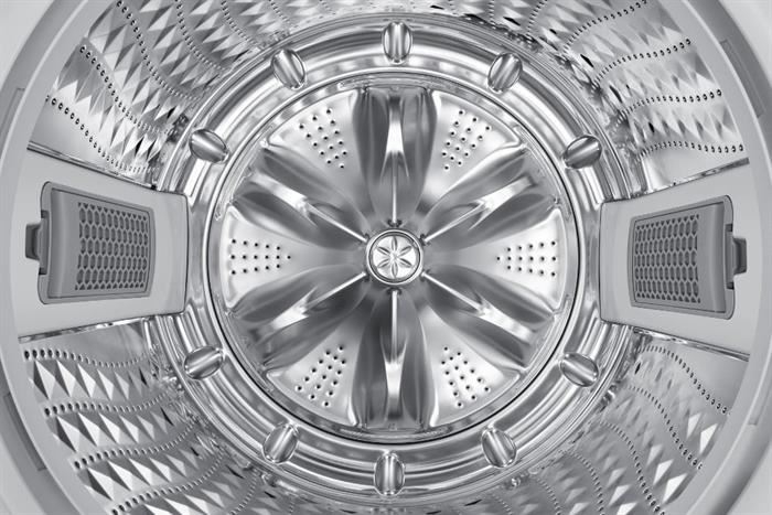 Khối lượng giặt lên đến 19 kg đáp ứng tốt nhu cầu của gia đình đông người hoặc những hộ thường xuyên giặt chăn, drap, rèm cửa và quần áo dày.