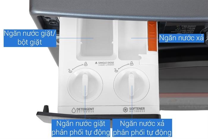 SenseDose là tính năng rất thực tế: máy dùng cảm biến để ước lượng lượng đồ và chương trình, từ đó tự lấy lượng nước giặt và nước xả phù hợp. Nhờ vậy, hạn chế tình trạng dư chất giặt tẩy bám lại trên vải, đồng thời giảm lãng phí hóa chất sau mỗi mẻ.