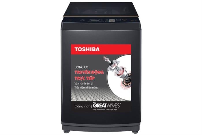Toshiba Inverter 10 kg AW-DM1100JV à mẫu máy giặt cửa trên – lồng đứng với ngoại hình vuông vức, màu đen sang trọng, dễ phối với nhiều kiểu nội thất khác nhau.