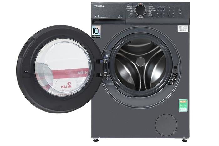 Máy giặt Toshiba Inverter 11 kg TW-T21B120UWV(MG) thuộc dòng cửa trước lồng ngang, đường nét vuông vức hiện đại, phù hợp với nhiều phong cách nội thất gia đình. Cụm điều khiển được bố trí phía trước, gồm núm xoay, phím cảm ứng và màn hình hiển thị, hỗ trợ song ngữ Anh – Việt, thân thiện với mọi đối tượng sử dụng.