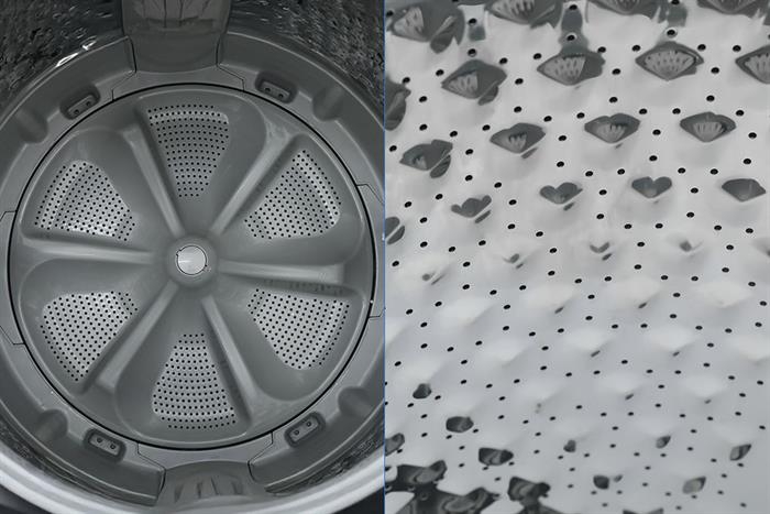 Công nghệ GreatWaves tạo dòng nước xoáy giúp hòa tan bột giặt hiệu quả và làm sạch đồng đều nhiều lớp vải trong cùng một mẻ giặt.