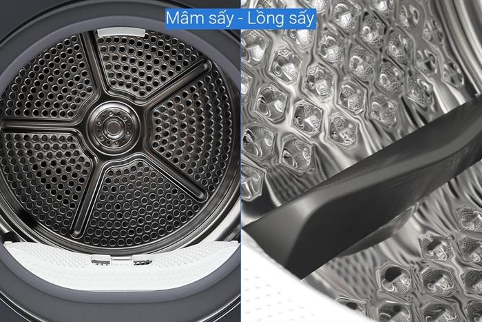Cửa sấy thiết kế lớn giúp thao tác bỏ vào và lấy đồ ra thuận tiện hơn. Lồng sấy bằng thép không gỉ bền chắc, dẫn nhiệt tốt và dễ vệ sinh sau thời gian sử dụng.