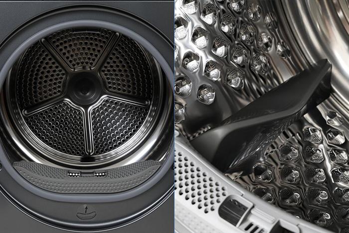 Lồng sấy thép không gỉ chịu ma sát tốt khi quần áo quay liên tục, hỗ trợ độ bền ổn định trong quá trình sử dụng lâu dài.