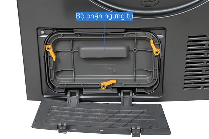 Máy ứng dụng công nghệ sấy bơm nhiệt (Heat Pump) với nhiệt độ sấy tối đa khoảng 55 – 60°C. Không khí được làm nóng để hút ẩm từ quần áo, sau đó làm lạnh để ngưng tụ hơi nước và tái sử dụng lại luồng khí trong chu trình.
