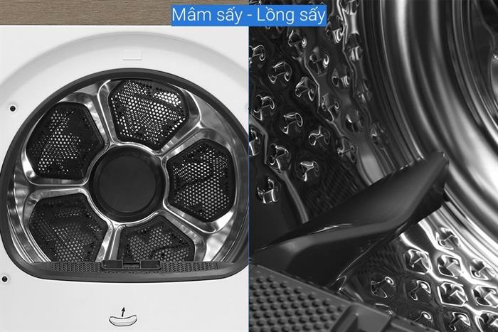 Cơ chế sấy đảo chiều giúp quần áo khô đều hơn, giảm nhăn và hạn chế xoắn rối khi sấy nhiều đồ cùng lúc.