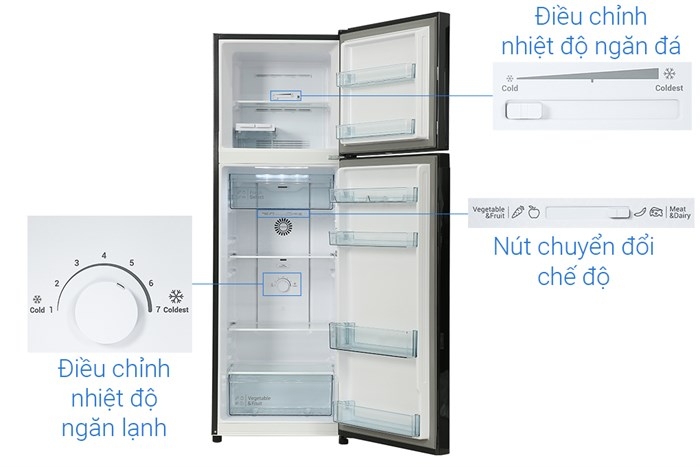 Ngăn trữ chuyển đổi linh hoạt: Ngăn này có thể thay đổi vị trí (trên hoặc dưới) và chức năng theo nhu cầu. Bạn có thể chuyển đổi giữa chế độ trữ rau hoặc trữ sữa/thịt. điều chỉnh nhiệt độ phù hợp với từng loại thực phẩm. giúp tối ưu cả không gian lẫn cách bảo quản.