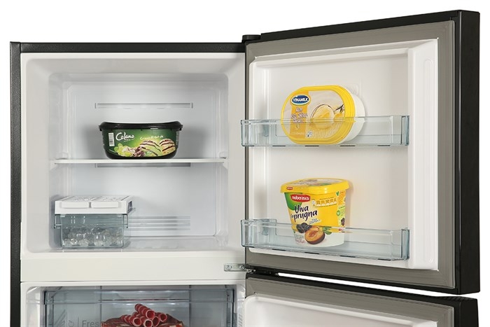 Ngăn đá 56 lít được chia thành 2 khoang riêng. thích hợp bảo quản thịt cá. thực phẩm đông lạnh và đá viên dùng trong vài ngày. Cách chia tầng đơn giản nhưng hiệu quả. giúp hạn chế lẫn mùi và dễ kiểm soát lượng thực phẩm đang trữ.