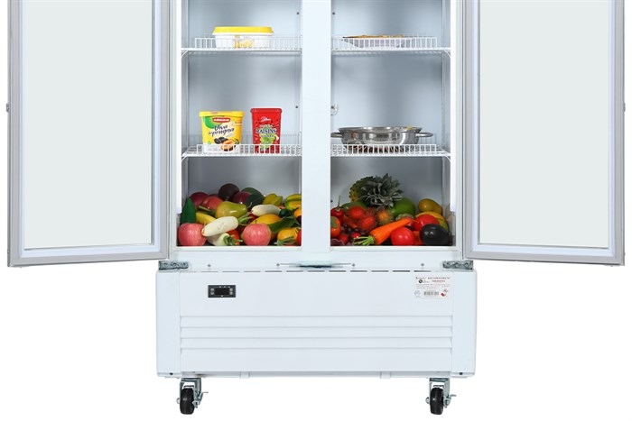 - Dạng tủ 2 cánh và 1 ngăn mát với phần cánh tủ bằng nhựa bọc nhôm có độ bền cao và có thể dễ dàng nhìn thấy thực phẩm bên trong, tiện cho việc bán hàng.